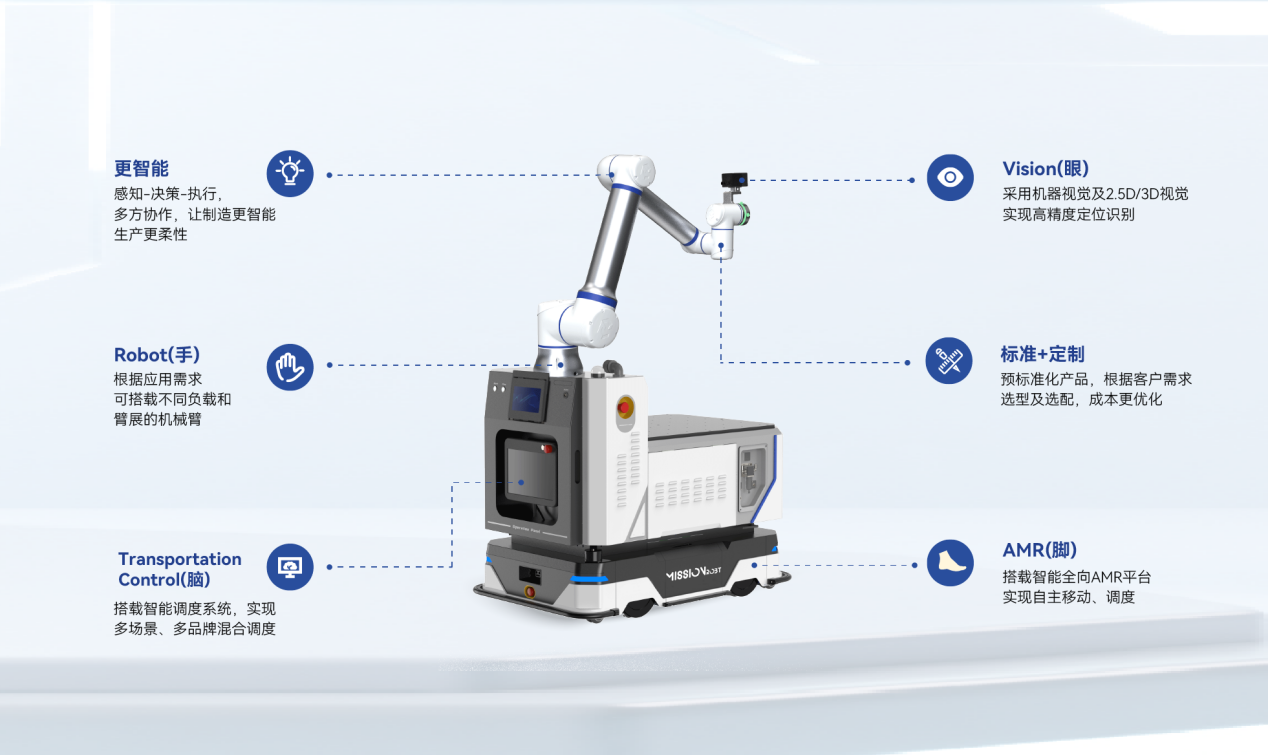 全向挪动底盘(脚):采用全向驱动机构取驱控一体模组,正在狭小复杂中步履矫捷精准。独有的热插拔换电系统支撑全天候功课,底盘驻车不变系统确保机械臂高速活动时整车均衡。高鲁棒视觉系统(眼):搭载自研的2。5D视觉取视觉-惯性融合算法,正在远距离、动态及复杂光照下,仍能连结高精度的方针识别取抓取位姿估量能力。智能协同安排系统(脑):做为“地方神经枢纽”,多品牌设备接入,具备交通管制取流量优化能力,并能取MES、WMS、PLC等上层系统深度互联。正在此根本上系统操纵AI手艺,正在客户当地内,严酷满脚全球头部智能终端客户严苛数据平安办理的前提下,通过对当地出产数据的从动阐发取标注,驱动持续的、当地的强化进修。从而正在客户现场闭环地、自从地提拔模子鲁棒性取使命机能,建立从使命触发、出产节奏节制到模子进化均完全正在客户边完成的端到端从动化闭环。高靠得住施行单位(手):协做机械人产物笼盖3~30KG宽负载范畴,具备业内首个MTBF 10万小时测试认证,同时满脚31项功能平安要求,全面保障人机协做场景的平安取不变。通过一体化节制器承担“施行中枢”的脚色,让机械臂、底盘、而是一个同一的工程系统,实正做到四肢举动协同。帮力客户将营业模式从局部的试点验证,无缝为可复制的规模化摆设。
